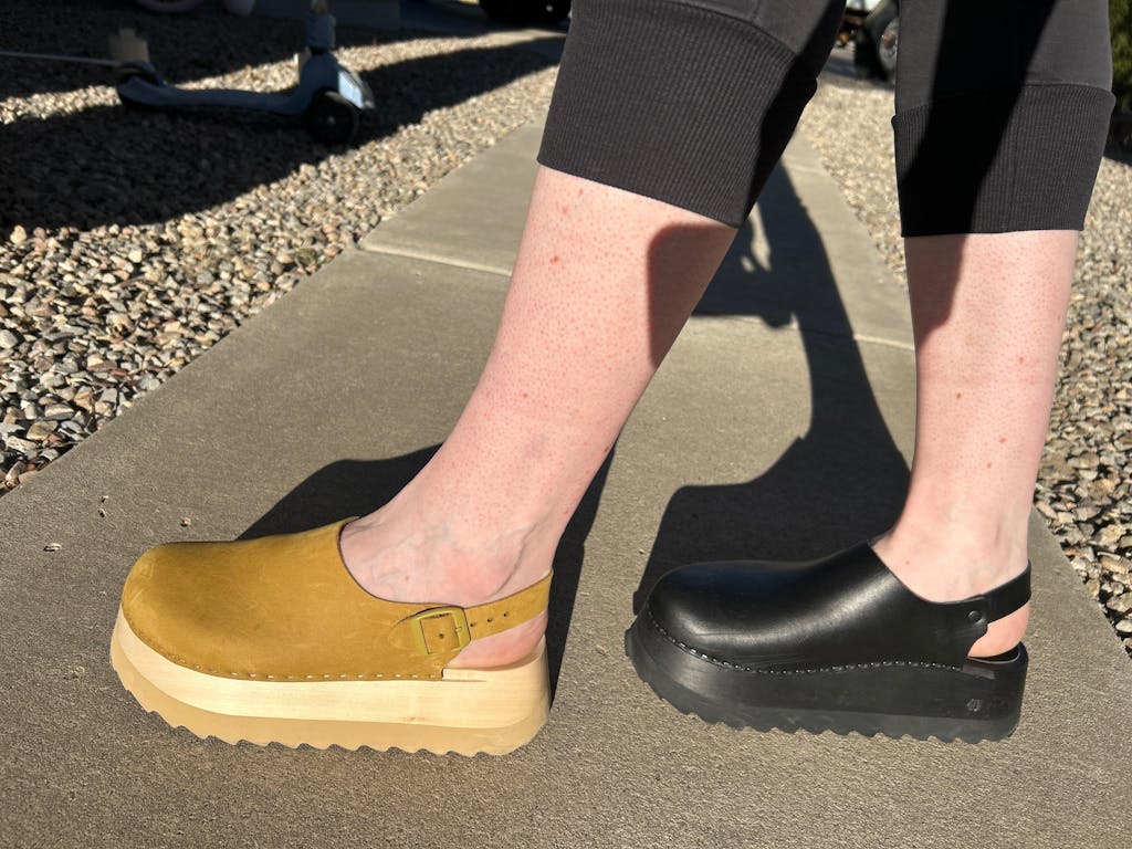 If you are between sizes or a wide, we recommend sizing up on all clog styles, except high heel sandals.